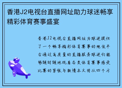 湖南卫视在线直播概述 湖南卫视在线直播为观众提供了一个全新的平台,让人们能够随时随地欣赏到精彩的体育赛事。通过高质量的直播技术和丰富的赛事内容,湖南卫视不仅满足了观众对体育的热爱,也为赛事的传播和推广提供了强有力的支持。无论是足球、篮球、还是其他各类体育项目,湖南卫视都能为观众带来身临其境的观看体验。本文将从赛事直播的技术优势、观众互动体验、赛事内容丰富性以及对体育文化的推动四个方面进行详细阐述,...